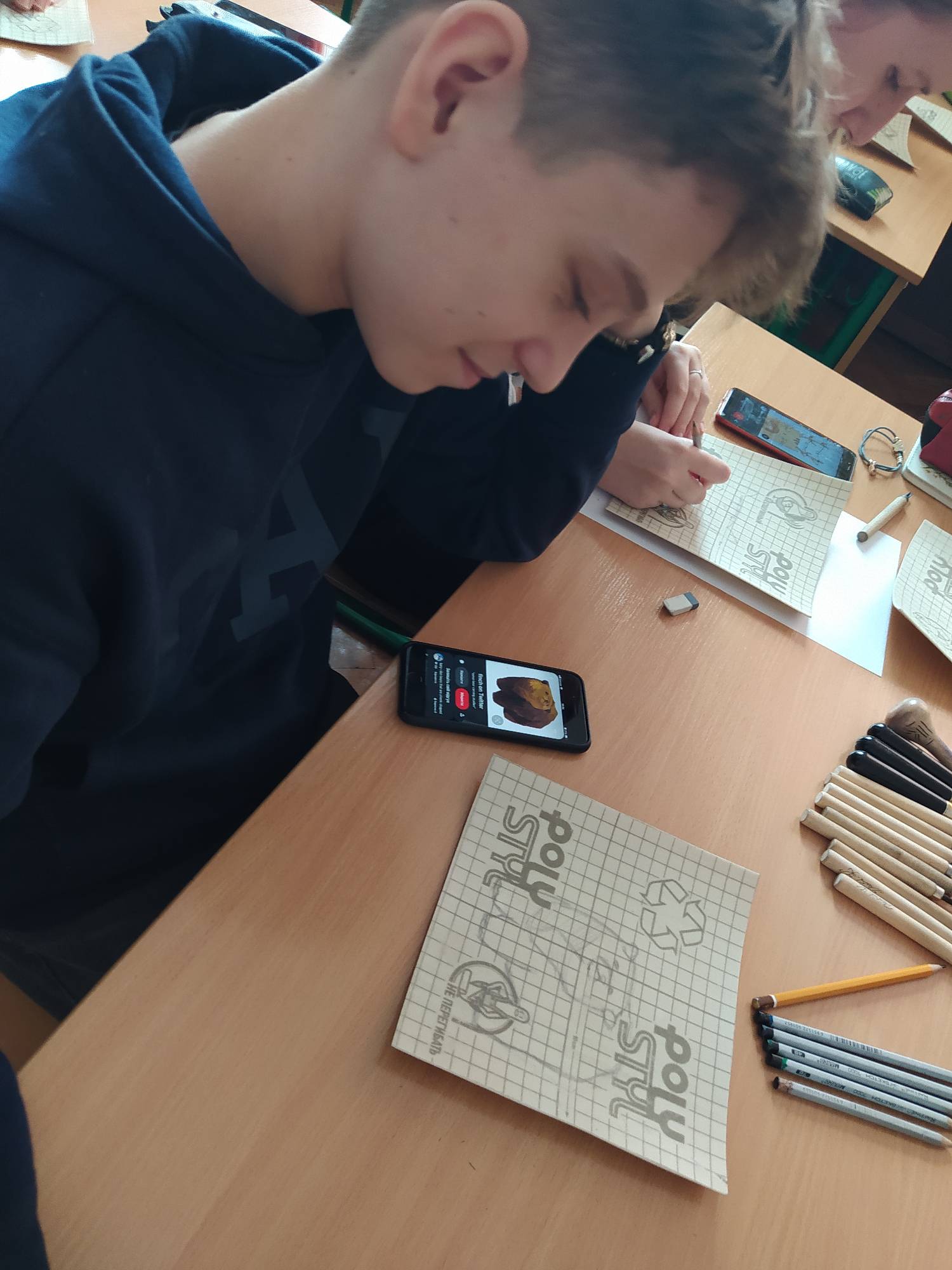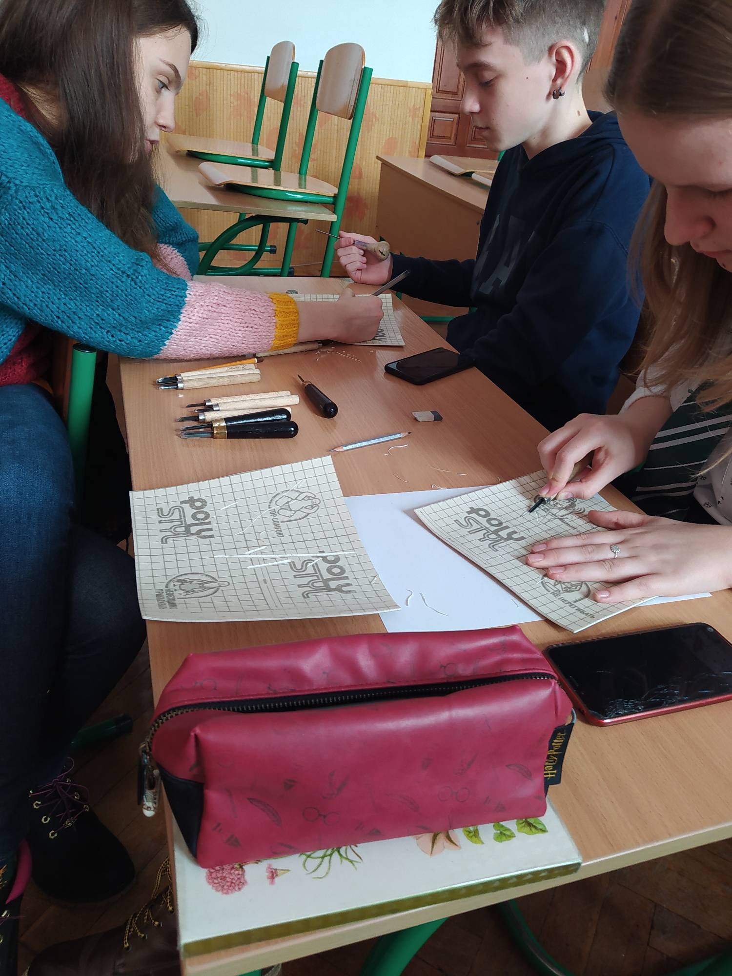 Що може бути краще за бажання обдарованих та успішних випускників повернутися до школи із бажанням поділитися набутим досвідом та знаннями? Саме так сталося 28 грудня, коли наша учениця, переможниця багатьох олімпіад та конкурсів з образотворчого мистецтва, Катя Колісник провела майстер клас з ліногравюри для талановитих художників старших класів. Навчаючись у Краківській академії мистецтв, Катя опанувала багато матеріалів та технік, проте ліногравюра, за її словами, одна з найулюбленіших. Вона не просто розповіла та показала як працювати у цій техніці, але й забезпечила учасників усім необхідним для роботи. Результат – це не лише гарні роботи, але й чудовий настрій та впевненість у своїх силах, які так потрібні творчим людям!