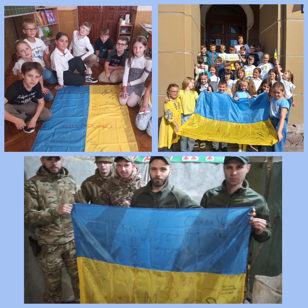 Учні 4-В класу передали бійцям військової частини 3035 Національної гвардії України м. Слов’янська, де служить батько нашої учениці, розписаний прапор, який буде оберегом бійцям на полі бою.