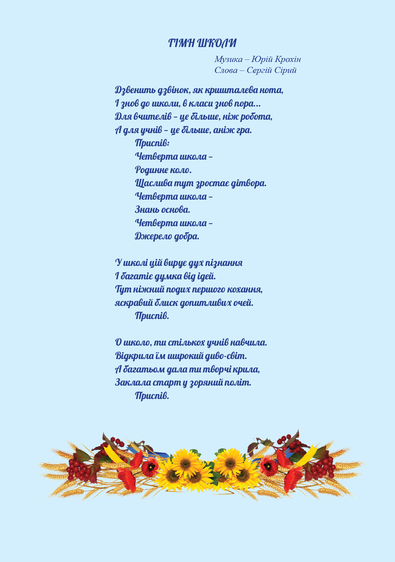 Кредо школи: Діяти. Творити. Вдосконалюватися.