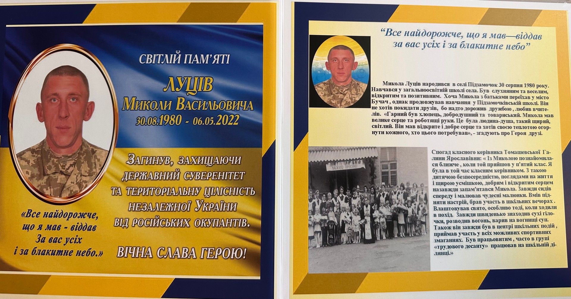 Та найбільш щемливою була історія учня про свого рідного тата Миколи Луціва котрий віддав життя захищаючи нашу державу